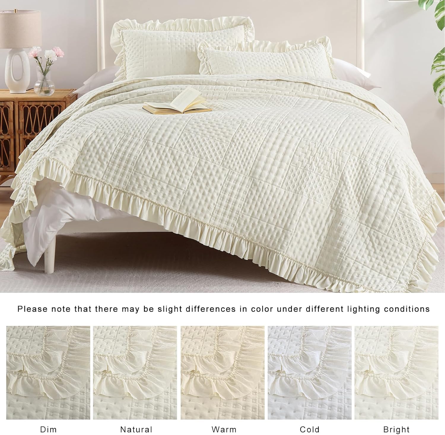 Whether you’re looking to refresh your bedding for a new season or simply want to add a touch of elegance to your space, the DJY Beige Queen Set Ruffled Quilt Set is the perfect choice. Transform your bedroom into a luxurious sanctuary with this stunning bedding set.